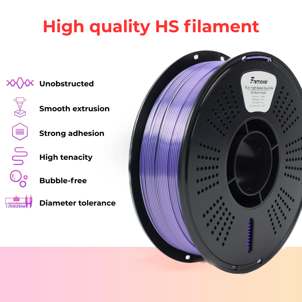 Discover the luxurious finish of Fremover PLA+ High Speed Dual SILK, a premium filament designed for high-speed 3D printing with stunning two-color shine. Each strand features dual-tone color fusion with a silky texture, ideal for art pieces, decorations, and detailed models that stand out from every angle.